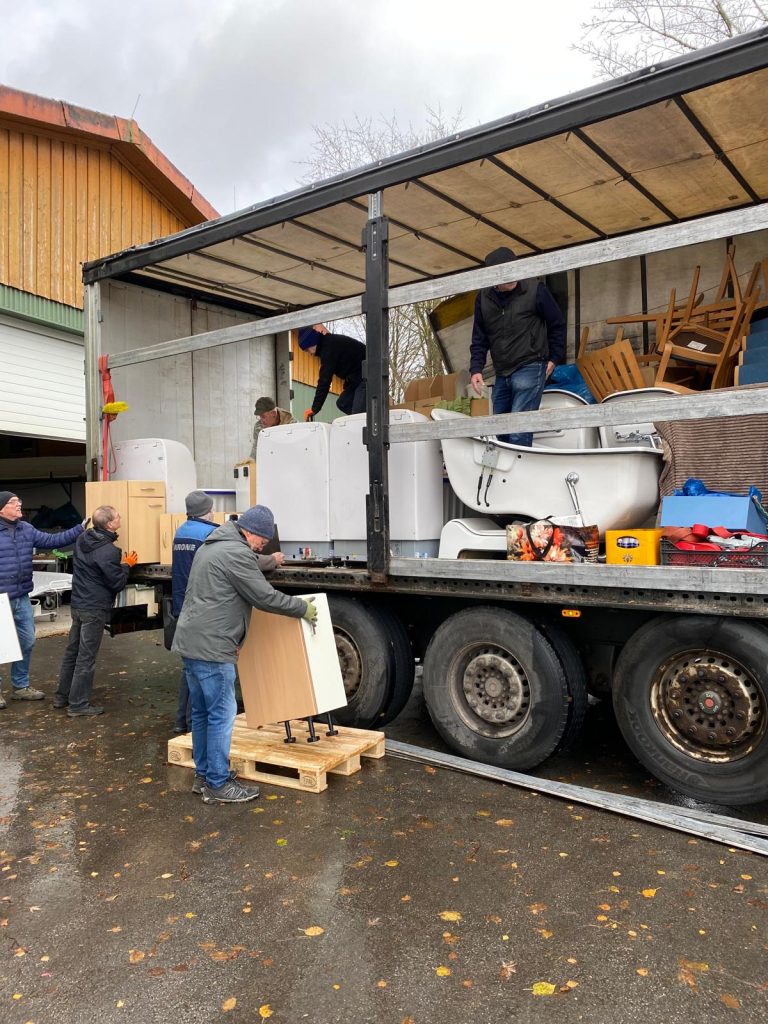 Als Nächstes wurde das Elisenstift in Humfeld angesteuert. Unter Leitung von Gerhard Schemmel konnte der Sattelschlepper komplett aufgefüllt werden. Auch hier waren viele helfende Hände vor Ort: